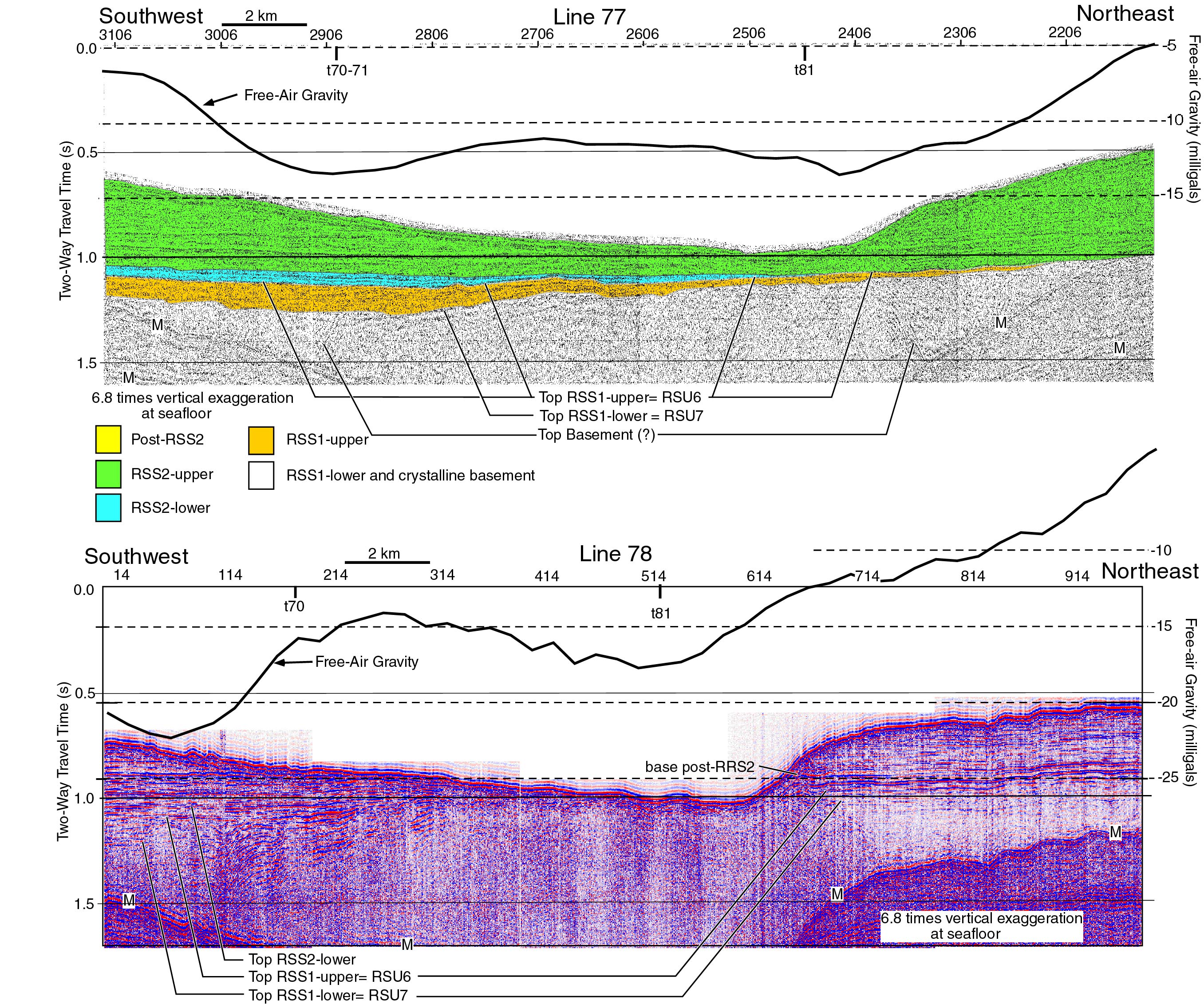 in the published article. Line 77 is shown as black and white seismic with